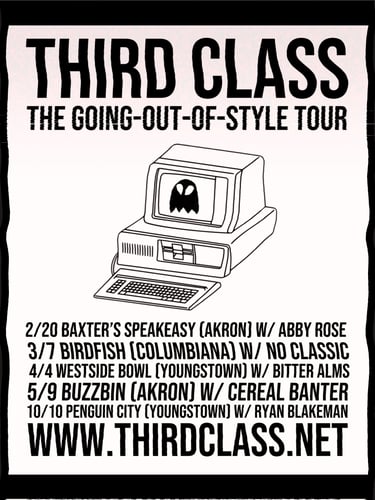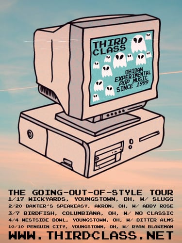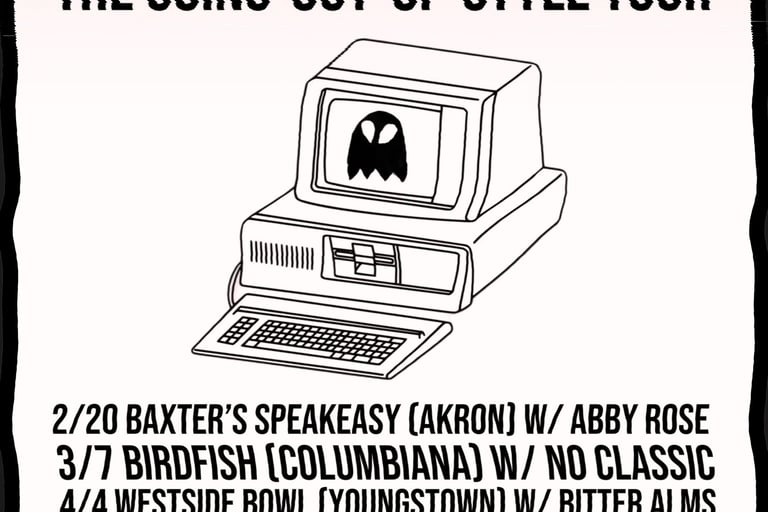 2025 (7 SHOWS) NOV 21 - ST JOHN’S EPISCOPAL CHURCH - YOUNGSTOWN, OH, NOV 1 - CEDARS - YOUNGSTOWN, OH, OCT 17 - BAXTER’S SPEAKEASY - AKRON, OH, OCT 3 - ST JOHN’S EPISCOPAL CHURCH - YOUNGSTOWN, OH, JULY 31 - EP LIBRARY - EAST PALESTINE, OH, JUNE 28 - WESTSIDE BOWL - YOUNGSTOWN, OH, JAN 25 - TREK COFFEE - YOUNGSTOWN, OH, 2024 (3 SHOWS) NOV 9 - WICKYARDS - YOUNGSTOWN, OH, MAR 30 - CEDARS - YOUNGSTOWN, OH, JAN 27 - CEDARS - YOUNGSTOWN, OH, 2023 (2 SHOWS) DEC 22 - HISTORIAN RECORDING CO. - YOUNGSTOWN, OH, JAN 25 - WESTSIDE BOWL - YOUNGSTOWN, OH, 2022 (15 SHOWS) DEC 21 - EP LIBRARY - EAST PALESTINE, OH, DEC 2 - WICKYARDS, YOUNGSTOWN, OH, NOV 12 - HAVANA HOUSE - NILES, OH, OCT 29 - BIRDFISH - COLUMBIANA, OH, OCT 27 - RIALTO THEATRE - AKRON, OH, SEP 10 - THE DREAMING TREE - HUBBARD, OH, SEP 2 - LIBS MARKET - SALEM, OH, JUN 25 - OGONTZ - LISBON, NH, APR 9 - LIEBE WEIN - SALEM, OH, FEB 19 - BUZZBIN - CANTON, OH, FEB 5 - THE RIG - WARREN, OH, JAN 15 - CEDARS - YOUNGSTOWN, OH, JAN 8 - KAFE KEROUAC - COLUMBUS, OH, JAN 7 - BEAUTIFUL WHIRL'D - WARREN, OH, JAN 3 - SPACE JAN'S - YOUNGSTOWN, OH, 2021 (10 SHOWS) DEC 25 - WESTSIDE BOWL - YOUNGSTOWN, OH, NOV 26 - CEDARS - YOUNGSTOWN, OH, NOV 7 - SOAP GALLERY - YOUNGSTOWN, OH, OCT 30 - CEDARS - YOUNGSTOWN, OH, OCT 10 - GOLD SOUNDS - BROOKLYN, NY, AUG 14 - THE SHORRAB RESIDENCE - CAMPBELL, OH, JUL 2 - SOAP GALLERY - YOUNGSTOWN, OH, JUN 6 - THE RAW ALTERNATIVE - YOUNGSTOWN, OH, MAY 29 - WESTSIDE BOWL - YOUNGSTOWN, OH, APR 23 - THE COR-PEP HUT - BOARDMAN, OH, 2020 (4 SHOWS) DEC 20 - FACEBOOK LIVE - EAST PALESTINE, OH, AUG 23 - FACEBOOK LIVE - EAST PALESTINE, OH, MAY 10 - FACEBOOK LIVE - EAST PALESTINE, OH, APR 5 - FACEBOOK LIVE - EAST PALESTINE, OH, 2019 (2 SHOWS) AUG 16 - 191 KNICKERBOCKER - BROOKLYN, NY, JUN 9 - GOLD SOUNDS - BROOKLYN, NY, 2018 (30 SHOWS) DEC 25 - CEDARS - YOUNGSTOWN, OH, NOV 11 - SILVANA - HARLEM, NY, SEP 23 - SILVANA - HARLEM, NY, AUG 24 - SHILLELAGH TAVERN - QUEENS, NY, AUG 15 - JEFFERSON STATION - BROOKLYN, NY, AUG 4 - HUDSON COFFEE - HOBOKEN, NJ, JUN 30 - WESTSIDE BOWL - YOUNGSTOWN, OH, JUN 24 - STUDIO OXYGEN - POLAND, OH, JUN 3 - VALLEY LITTLE MELODIES - CANFIELD OH, MAY 12 - CEDARS - YOUNGSTOWN, OH, MAY 5 - BEAUTIFUL WHIRL'D - WARREN, OH, APR 21 - FEDERAL FRENZY - YOUNGSTOWN, OH, APR 20 - BREW32 - PULASKI, PA, APR 19 - WILLOWS BY WEHR - COLUMBIANA, OH, APR 16 - SMILING MOOSE - PITTSBURGH, PA, APR 14 - EIGHTEEN-O-THREE TAPROOM - GALION, OH, APR 13 - THE WHISKEY BAR - CLEVELAND HEIGHTS, OH, APR 7 - LIME TREE - WARREN, OH, MAR 25 - MYRDDIN WINERY - BERLIN CENTER, OH, MAR 23 - SOAP GALLERY - YOUNGSTOWN, OH, MAR 18 - STUDIO OXYGEN - POLAND, OH, MAR 10 - FRESH PRESS KITCHEN - LOVELAND, OH, MAR 9 - HYDE PERK - NORWOOD, OH, FEB 16 - WHISTLE & KEG - YOUNGSTOWN, OH, FEB 11 - STUDIO OXYGEN - POLAND, OH, FEB 10 - LIME TREE - WARREN, OH, FEB 3 - EIGHTEEN-O-THREE TAPROOM - GALION, OH, JAN 19 - SOAP GALLERY - YOUNGSTOWN, OH, JAN 14 - MYRDDIN WINERY - BERLIN CENTER, OH, 2017 (35 SHOWS) DEC 22 - STONE FRUIT - BOARDMAN, OH, DEC 17 - BLACK FORGE - PITTSBURGH, PA, DEC 16 - MR SMALLS - MILLVALE, PA, NOV 26 - STUDIO OXYGEN - POLAND, OH, NOV 11 - NOVA CELLARS - PULASKI, PA, NOV 4 - GENERATIONS - COLUMBIANA, OH, OCT 14 - DILETTO WINERY - CANFIELD, OH, OCT 14 - QUAKERFEST - SALEM, OH, OCT 6 - SOAP GALLERY - YOUNGSTOWN, OH, SEP 23 - EAST PALESTINE PARK - EAST PALESTINE, OH, SEP 16 - BOTTOMS UP - COLUMBUS, OH, SEP 2 - SCRIBBLES - KENT, OH, SEP 2 - PAPPY Z'S - NEGLEY, OH, AUG 26 - DOGS ON THE RUN - EAST PALESTINE, OH, AUG 19 - THE BELVIDERE - AKRON, OH, AUG 4 - LIBS MARKET - SALEM, OH, JUL 8 - CEDARS - YOUNGSTOWN, OH, JUN 24 - SUZIE'S - YOUNGSTOWN, OH, MAY 5 - UNCORKED - AKRON, OH, APR 29 - ART HOUSE KENT - KENT, OH, APR 15 - BARREL RUN WINERY - ROOTSTOWN, OH, APR 8 - BOTTOMS UP - COLUMBUS, OH, APR 1 - BEAUTIFUL WHIRL'D - WARREN, OH, MAR 31 - ANNABELLE'S - AKRON, OH, MAR 25 - THE ROOT CAFE - LAKEWOOD, OH, MAR 11 - BIRDFISH - COLUMBIANA, OH, MAR 5 - STUDIO OXYGEN - POLAND, OH, FEB 18 - NERVOUS DOG - STOW, OH, FEB 11 - NERVOUS DOG - AKRON, OH, FEB 9 - CHRISTOPHER'S - YOUNGSTOWN, OH, FEB 4 - EIGHTEEN-O-THREE TAPROOM - GALION, OH, FEB 4 - LUCKY RECORDS - WOOSTER, OH, JAN 14 - THE MAKESHIFT - WARREN, OH, JAN 13 - BREW32 - PULASKI, PA, JAN 7 - TWO RIVERS COFFEE - NEW CASTLE, PA, 2016 (23 SHOWS) DEC 31 - SOAP GALLERY - YOUNGSTOWN, OH, DEC 30 - CEDARS - YOUNGSTOWN, OH, DEC 17 - STUDIO OXYGEN - CANFIELD, OH, DEC 10 - DILETTO WINERY - CANFIELD, OH, DEC 3 - GEORGE'S LOUNGE - CANTON, OH, NOV 26 - THE BELVIDERE - AKRON, OH, NOV 26 - THE ORANGE AVOCADO - BOARDMAN, OH, NOV 5 - DILETTO WINERY - CANFIELD, OH, NOV 4 - GENERATIONS - COLUMBIANA, OH, OCT 8 - SOAP GALLERY - YOUNGSTOWN, OH, SEP 10 - GEORGE'S LOUNGE - CANTON, OH, AUG 20 - THE BELVIDERE - AKRON, OH, AUG 6 - SUZIE'S - YOUNGSTOWN, OH, JUL 30 - SUZIE'S - YOUNGSTOWN, OH, JUL 16 - DILETTO WINERY - CANFIELD, OH, JUN 24 - CEDARS - YOUNGSTOWN, OH, MAY 28 - HARTFORD HILL WINERY - FOWLER, OH, MAY 7 - BIRDFISH - COLUMBIANA, OH, MAY 13 - BEACHLAND TAVERN - CLEVELAND, OH, MAR 12 - CEDARS - YOUNGSTOWN, OH, FEB 12 - FRACTURED GRAPE - NEW WILMINGTON, PA, FEB 6 - XLERATOR - BEAVER FALLS, PA, JAN 22 - M GALLERY, YOUNGSTOWN, OH, 2015 (50 SHOWS) DEC 31 - CHRISTOPHER'S - YOUNGSTOWN, OH, DEC 19 - LIBS MARKET - SALEM, OH, DEC 12 - GEORGE'S LOUNGE - CANTON, OH, DEC 11 - SCRIBBLES - KENT, OH, DEC 4 - SADIE RENE'S - NORTH CANTON, OH, NOV 21 - KING HOOKAH - BOARDMAN, OH, NOV 20 - THE COMET - CINCINNATI, OH, NOV 13 - BFCAT - BEAVER FALLS, PA, NOV 7 - LIME TREE - WARREN, OHIO, OCT 30 - DAN'S DOWNTOWN RECORDS - MUNCIE, IN, OCT 29 - LEFTY'S RECORDS - LINCOLN, NE, OCT 28 - OSCAR'S - HOXIE, KS, OCT 27 - ORIGINS COFFEEHOUSE - HAVILAND, KS, OCT 26 - COFFEE HOUSE ON CHERRY STREET - TULSA, OK, OCT 25 - MEAD'S CORNER - WICHITA, KS, OCT 24 - R COFFEE HOUSE - WICHITA, KS, OCT 24 - VINYL RENAISSANCE - COLUMBIA, MO, OCT 23 - SPIRITED GOAT - YELLOW SPRINGS, OH, OCT 3 - NERVOUS DOG - AKRON, OH, OCT 3 - KITCHEN INCUBATOR - YOUNGSTOWN, OH, OCT 2 - SOAP GALLERY -
